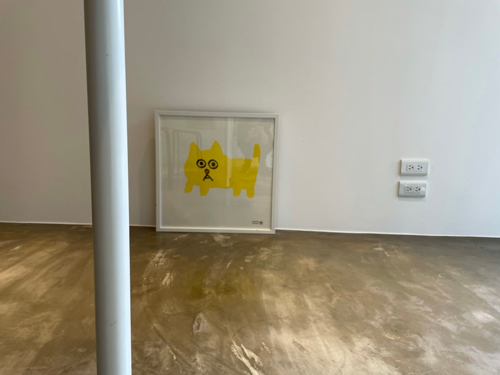 能想像得到,在展覽裡頭有各式各樣不同樣態的貓咪作品,唯一僅有飯川雄大(Takehiro Iikawa)的這隻黃色貓貓讓我停下了腳步,它是用一張裁切剩餘的畫紙所畫的,看似對於這件作品的創作十分隨性自由,卻讓我感覺到好像有那麼一點的與眾不同,而這隻黃色的貓咪像是不斷地跟隨我的眼球,像是不論你在哪個角度看,他都在深刻地注視你。