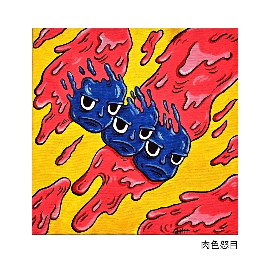Using American cartoon style, the whole has a pop art style street graffiti atmosphere. Abstract but concrete contradictory combination, expressing personal consciousness in a liquid way.