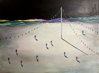 此展覽中,藝術家以遊戲作為場景,畫中人物在裡頭相互追逐、漫遊、等待…,他們穿梭在一種介於現實與不真實且曖昧的空間。藝術家試圖以一種旁觀者的態度,冷冷的、遠觀的、輕鬆的來去觀看這場遊戲,而遊玩的行為也暗示著群體在無意識下所衍生出的如盲從、競爭、或無法定義的關係,並藉其去回應當代生活中的某些情境。