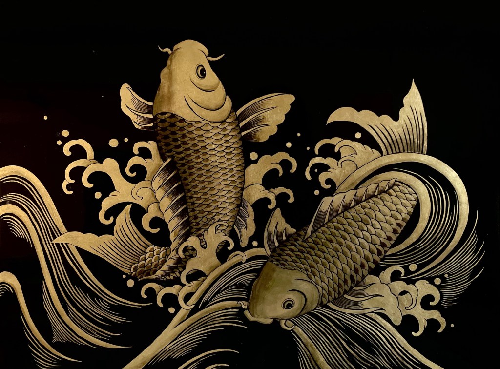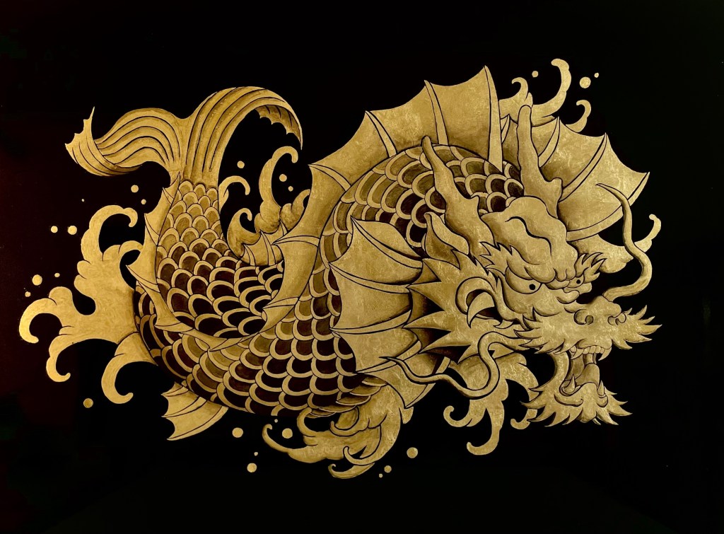 這次展覽主要以一部分廟宇建築的貼金和擂金技巧下去呈現,木板漆料等等均自行製作,畫面中除了有台灣廟宇建築的東方龍形象,也有以西方龍為主題的畫作,希望大家可以來看看以這種傳統技法表現不同的故事題材下,會有什麼樣的衝擊感,又或是充滿了和諧感? 啊!忘記說一個重點了!這也是讓大家了解傳統文化資產的一個機會,筆者相比傳統匠師肯定是不足的,但還是可以讓大家藉由這種多元化發展的型態,來多瞭解傳統文化資產。