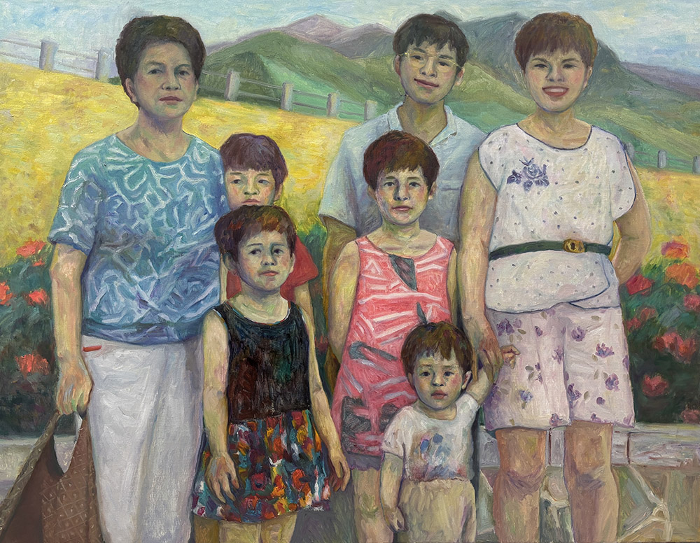 展覽「她She」講述五個年代女性的故事。以兩個系列呈現。作品「囍DoubleHappiness」以新式電腦繪製婚禮禮服的⽅式詮釋傳統⽂化與婚姻、傳統觀念對女性的重擔,以過去婚禮的囍字寫出Double的重量。其中童養媳的婚禮禮服、曾祖⺟的故事,沈重的⽣命經驗卻以歡樂的⾊彩呈現。油畫系列「迴Rewind」以傳統⽅式描繪現代的⽣活。看著姪女的現在回望過去,看到當初單純的年代。作品以油畫顏料堆疊出情感,透過畫的過程仔細觀察,與家⼈有更多的了解與連結。然⽽在⾃畫像的過程裡,緩慢與摸索,能否在⾃拍照的時代給予新的可能,畫筆下的⾃⼰是否更加的真實?最後,作品她的故事「囍」從過去延伸到未來,對比「迴」未來再回望過去的美好。看似⽭盾與衝突,就像ElvisCostello(艾維斯卡斯提洛) 的歌曲She⼀般,「她」不是特定的誰,「她」有很多可能的樣貌,相似,卻也如此不⼀樣。