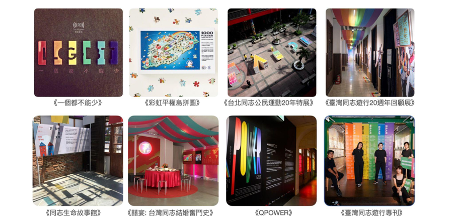 我們專注於「議題式策展」,尤其是人權、多元性別、文化等議題。透過內容企劃 x 空間設計,把龐大生硬的議題,轉化成易懂好玩的展覽體驗。過去10年間,參與了8檔在同志運動中重要的專案,踏上這條彩虹之路: